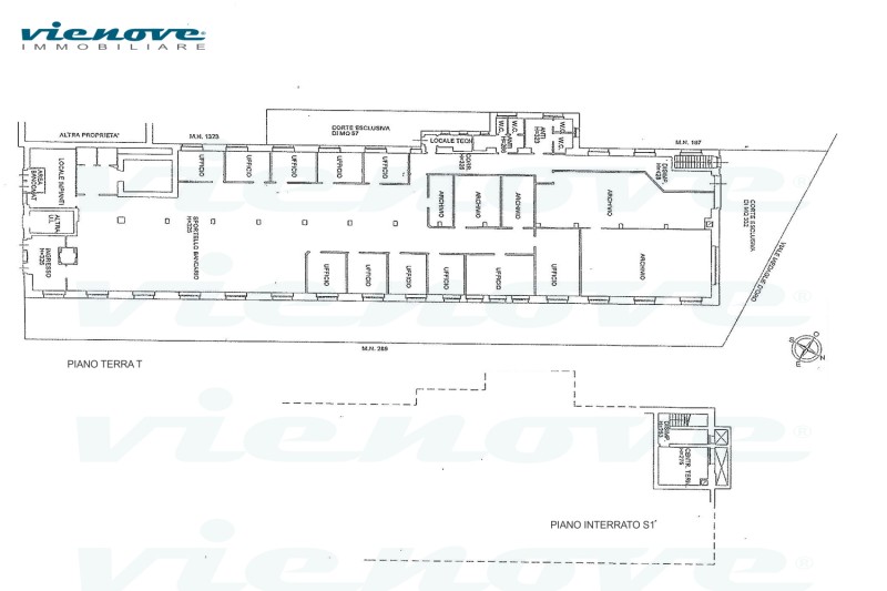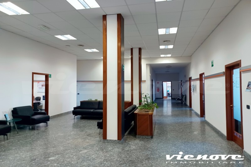 l’edificio è composto da ampio spazio di attesa per i clienti, un grande open space e diverse stanze/uffici alcuni dei quali ad uso archivio sui lati lunghi della struttura, completa la proprietà un ambiente al piano interrato destinato a centrale termica.