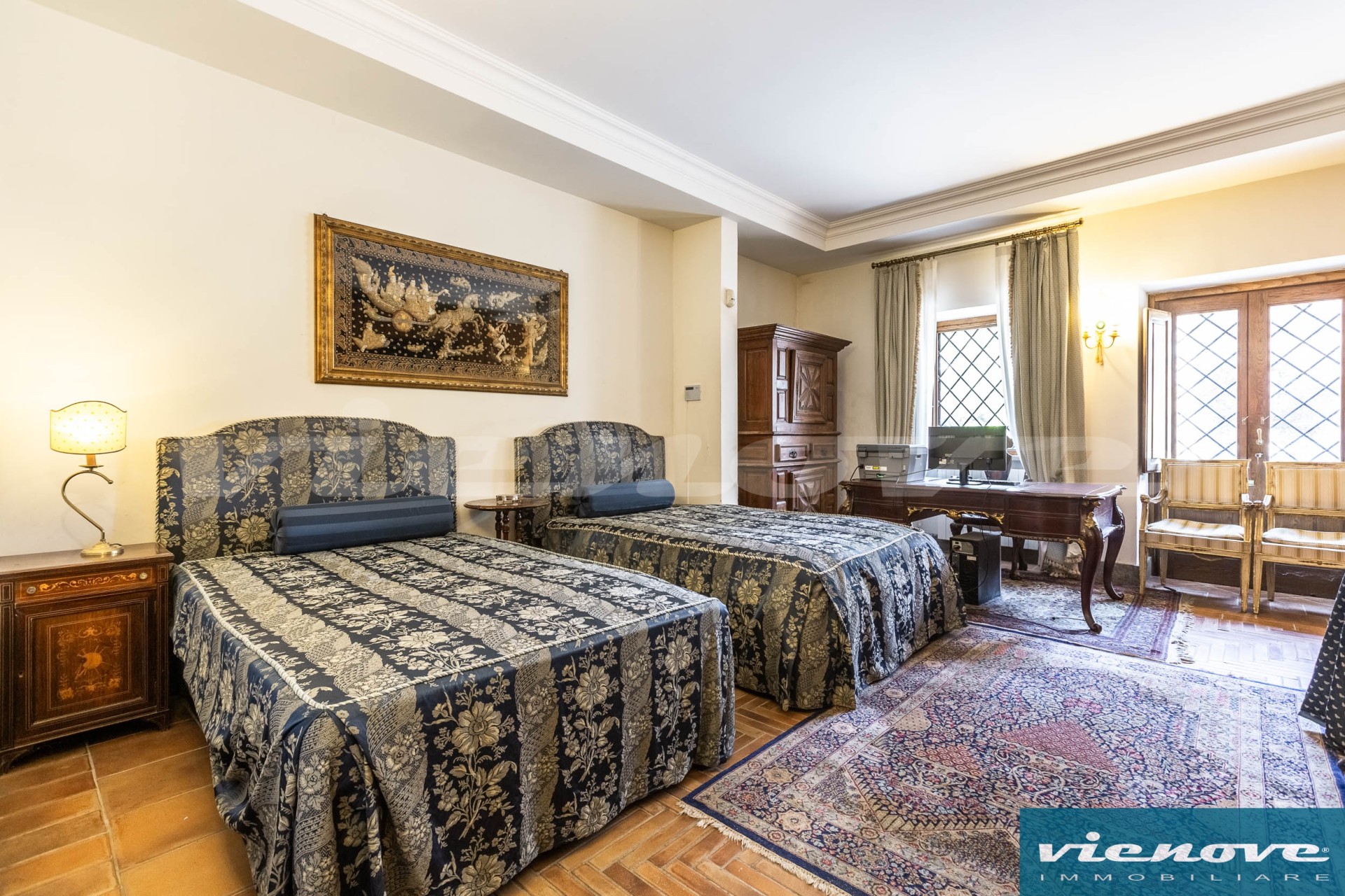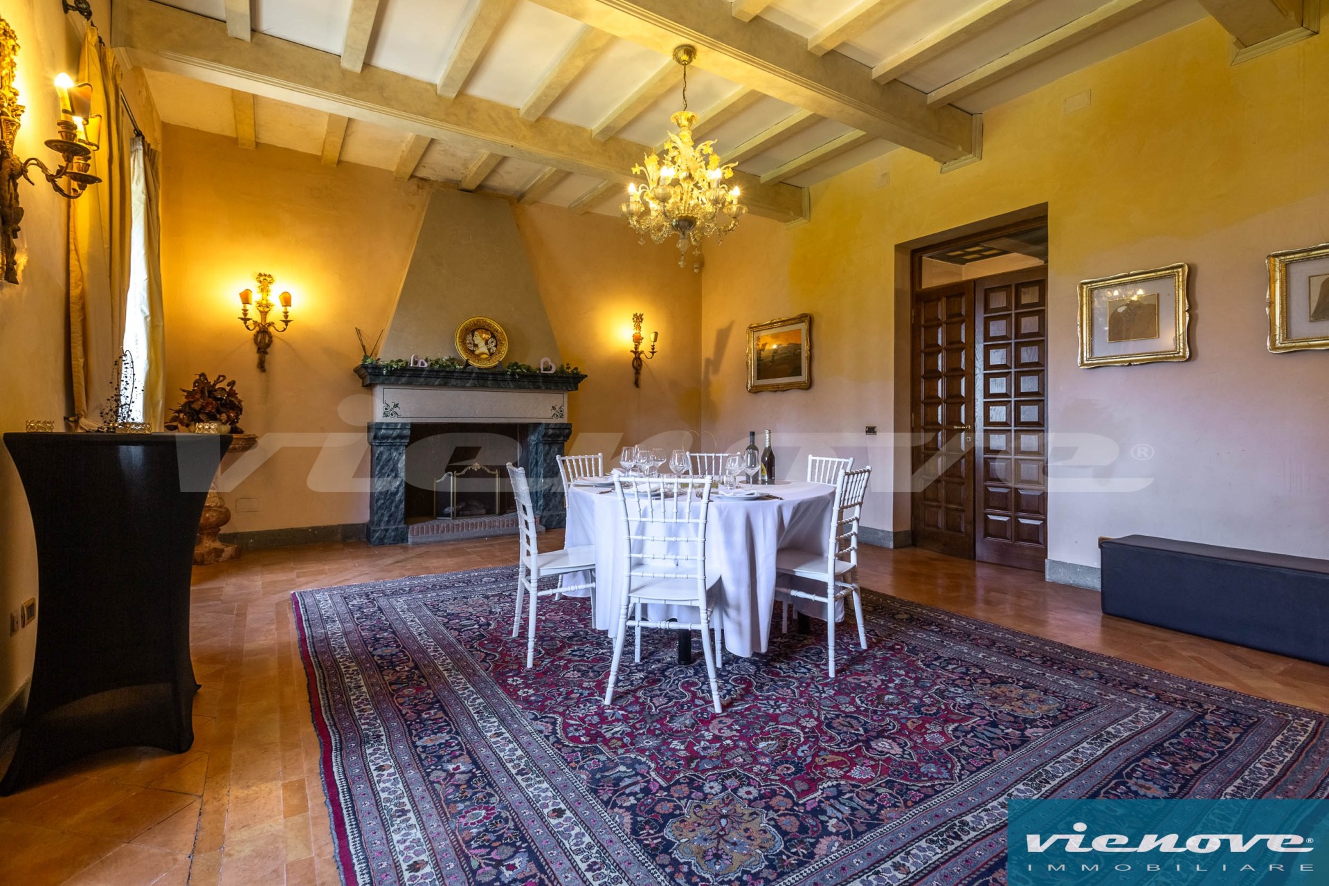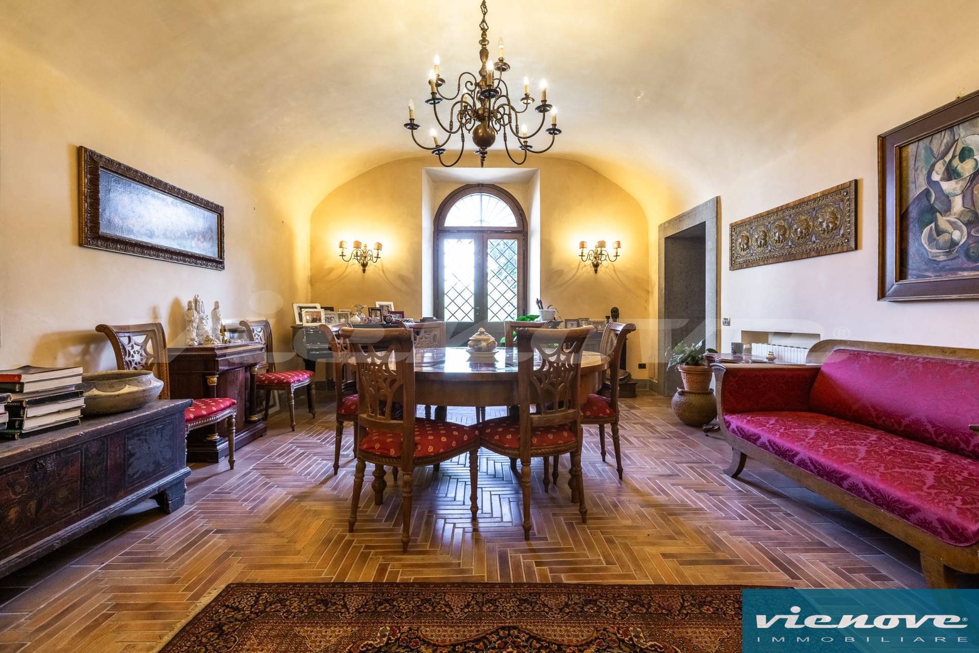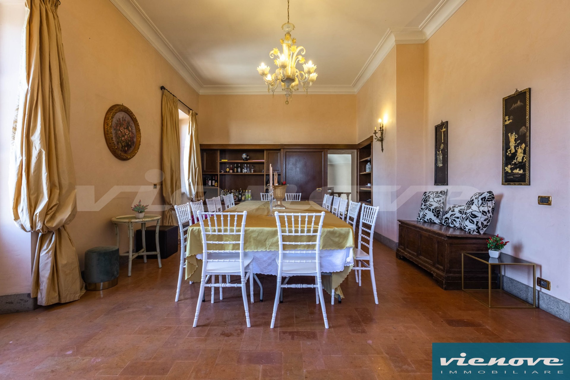 quattro sale di rappresentanza (di cui due con camino), studio, bagno ospiti, grande terrazzo orientato ad ovest