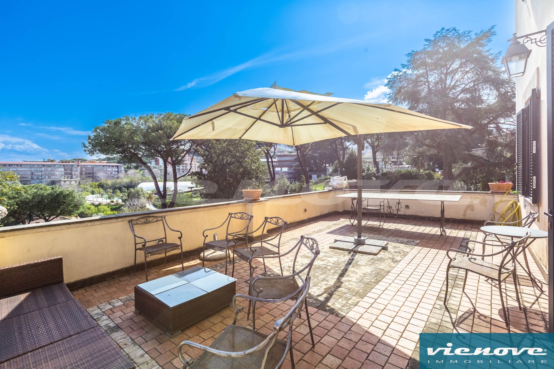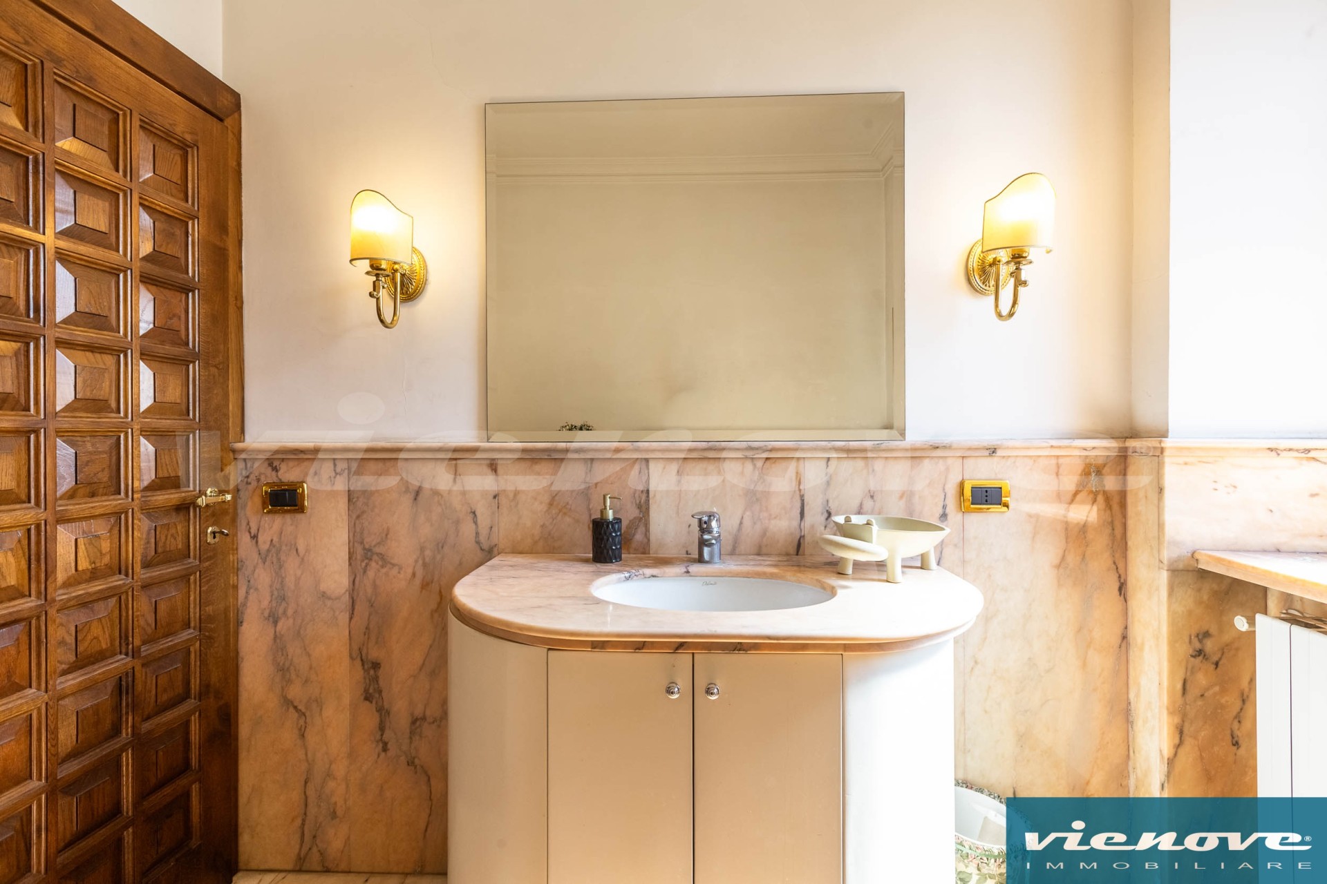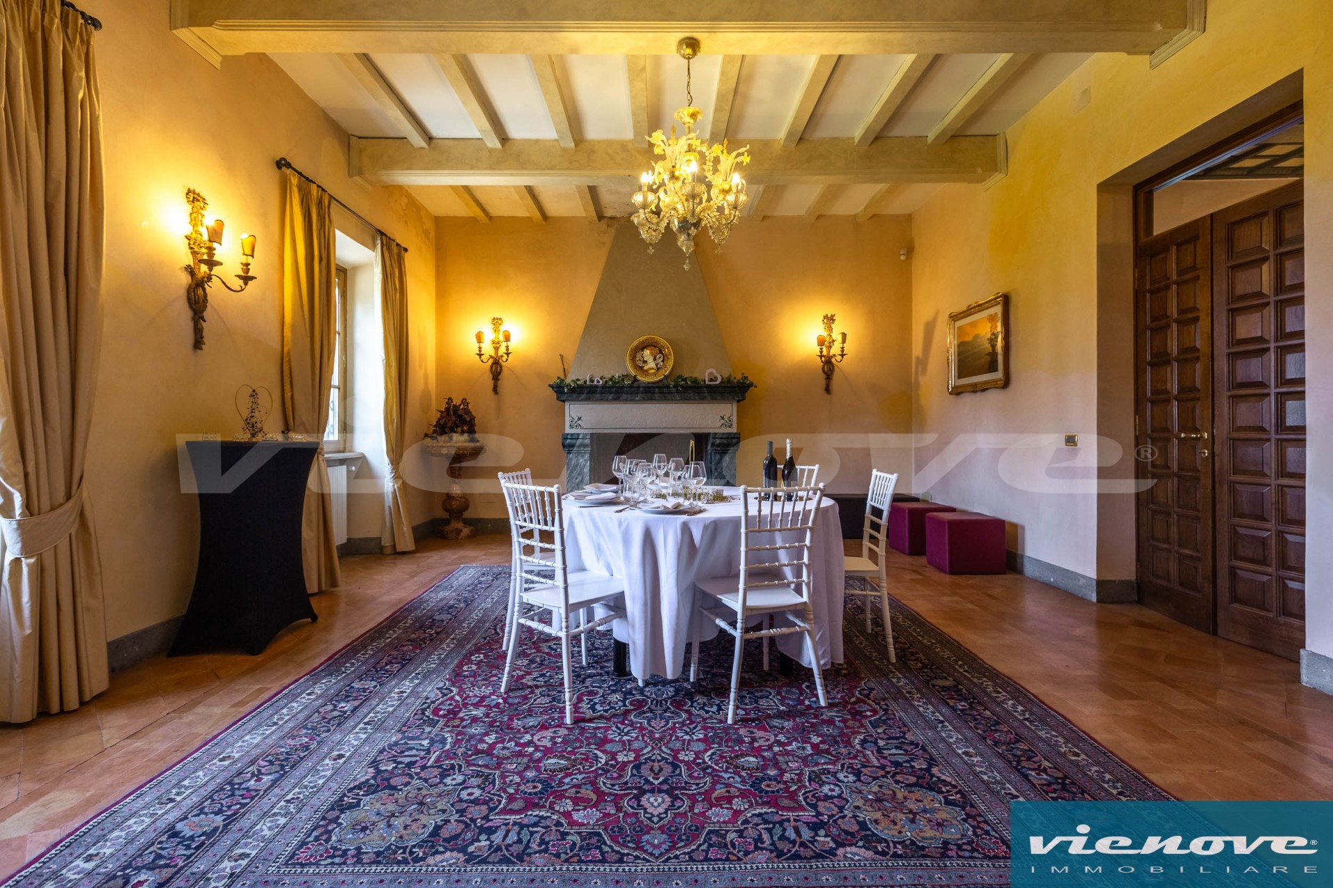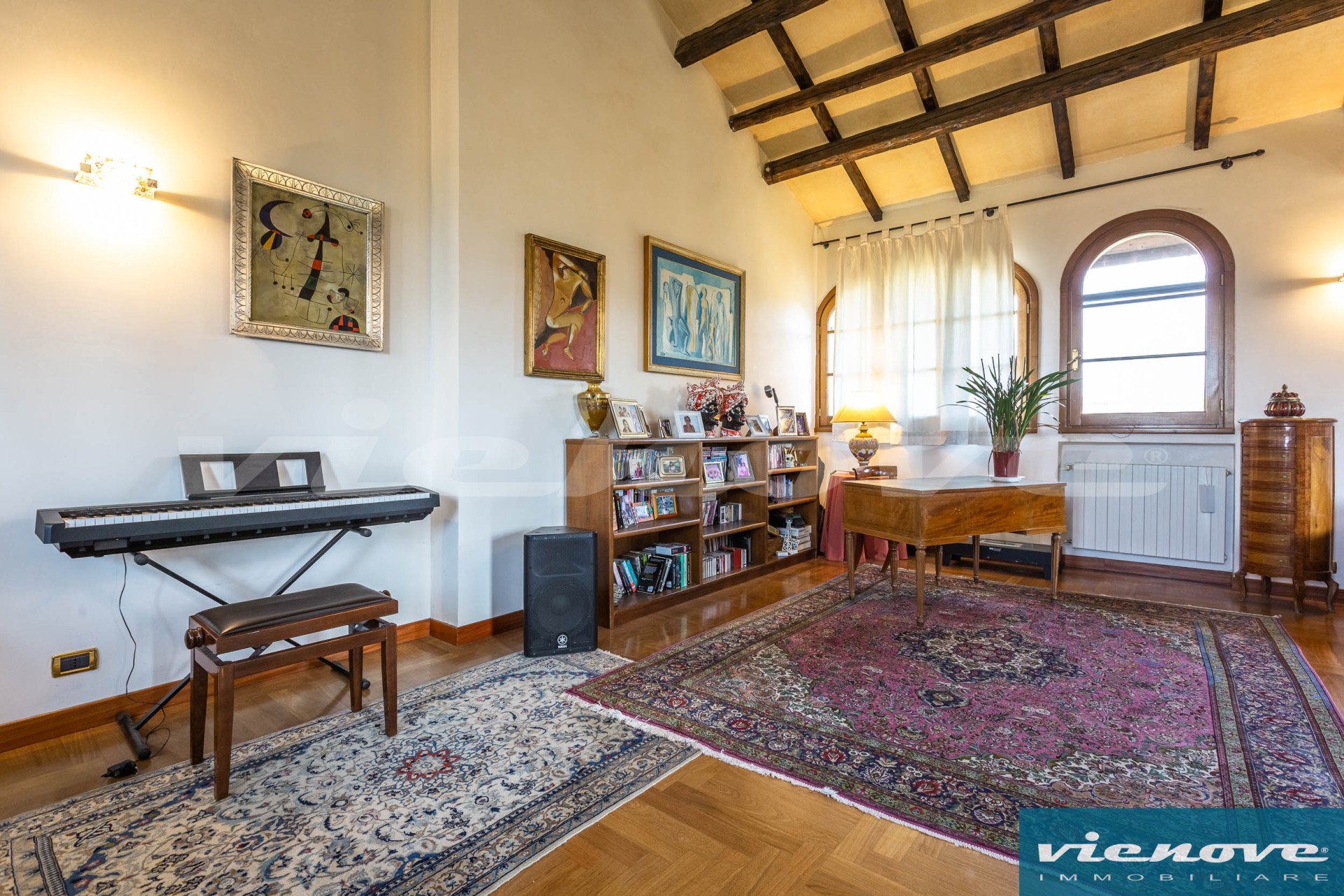 quattro sale di rappresentanza (di cui due con camino), studio, bagno ospiti, grande terrazzo orientato ad ovest