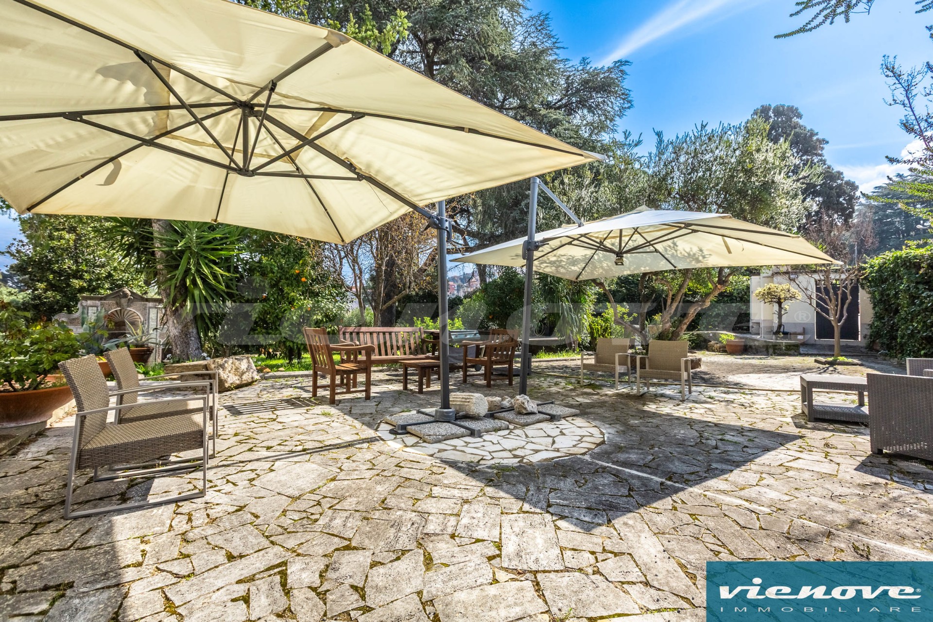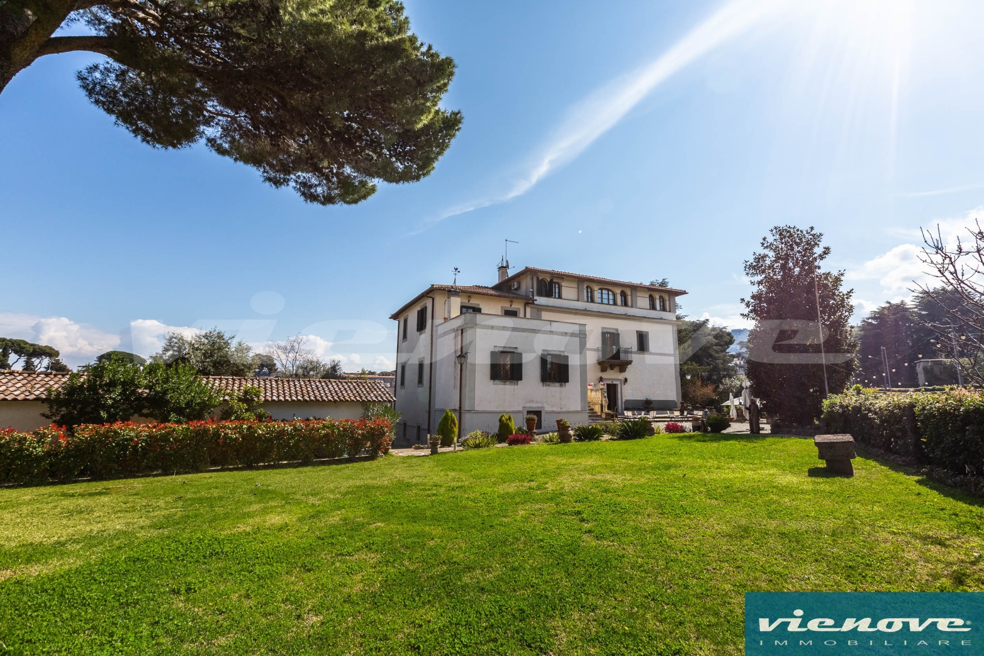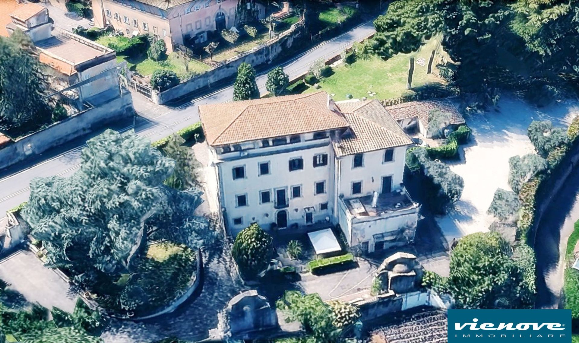 Frascati (Roma – Castelli Romani): Sulla via Tuscolana, a meno di un chilometro dal centro storico di Frascati, proponiamo una villa storica prestigiosa ed unica nel suo genere con una superficie coperta di circa 800 mq, terrazze panoramiche per complessivi circa 90 mq e circa 4.000 mq di parco privato.
