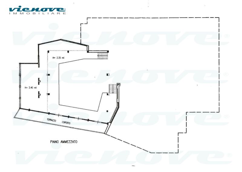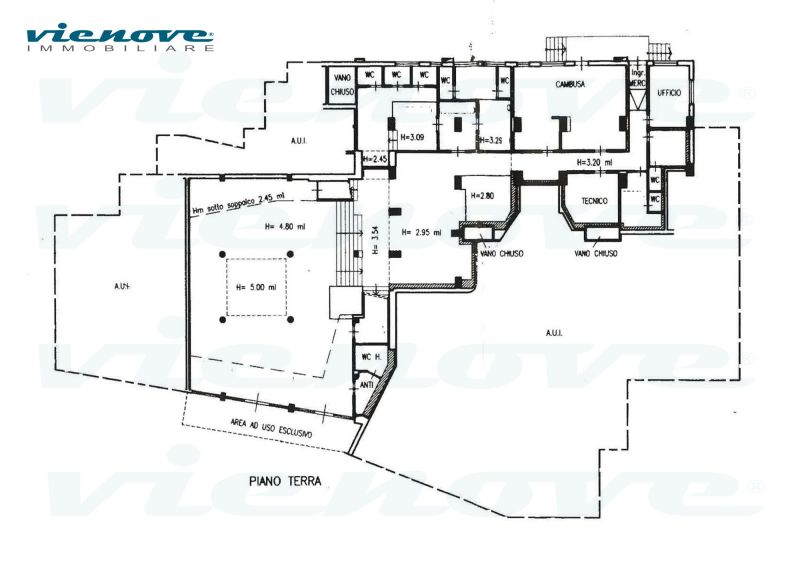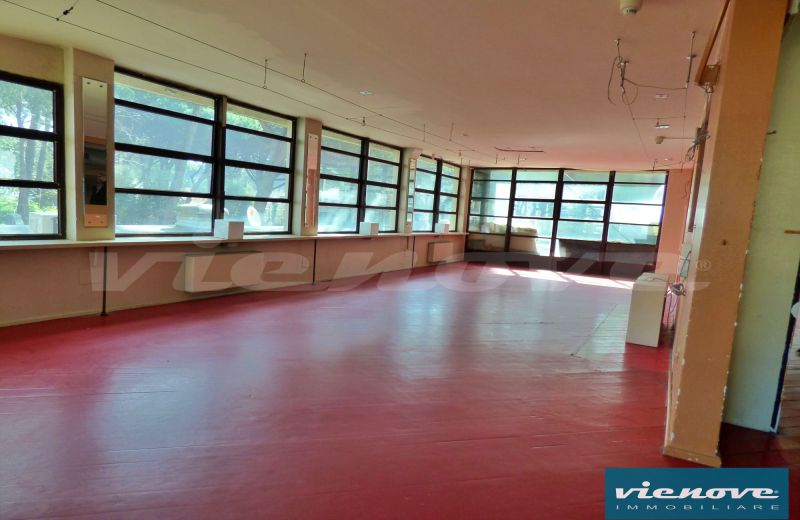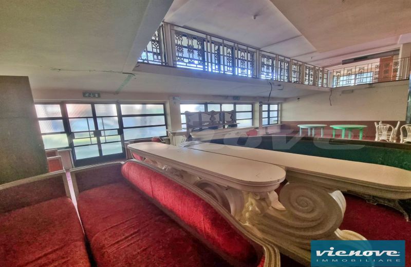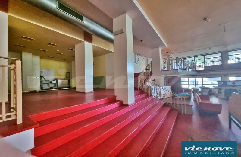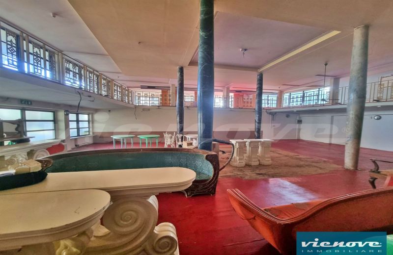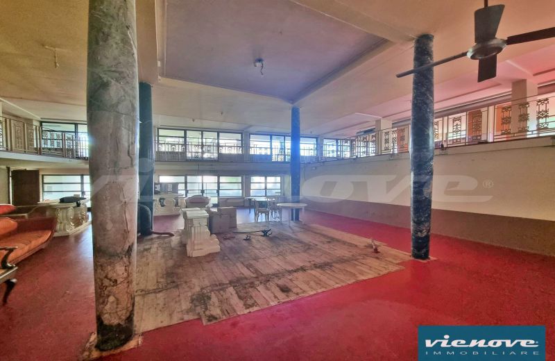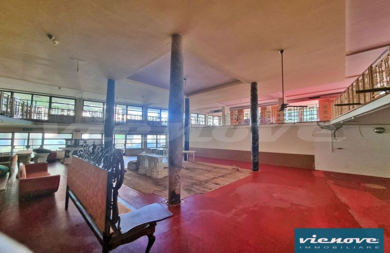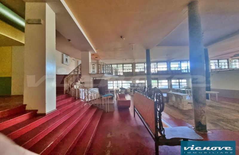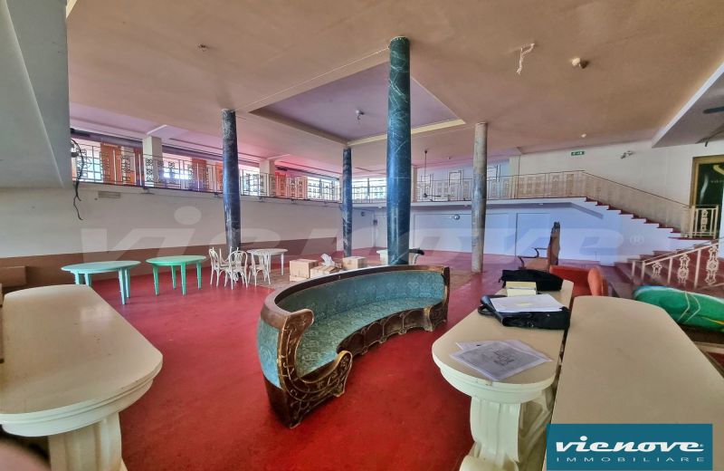L’immobile (attualmente accatastato come categoria D/8), è distribuito su due livelli, il piano terra e rialzato, di circa 560mq totali (dove si trovano il grande salone colonnato, uffici, cucina e dispensa, locali di servizio, spogliatoi e bagni), il piano soppalcato, di circa 240 mq (utilizzabile in vario modo), ed i balconi/terrazzi di circa 50mq, accessibili dal piano soppalcato.