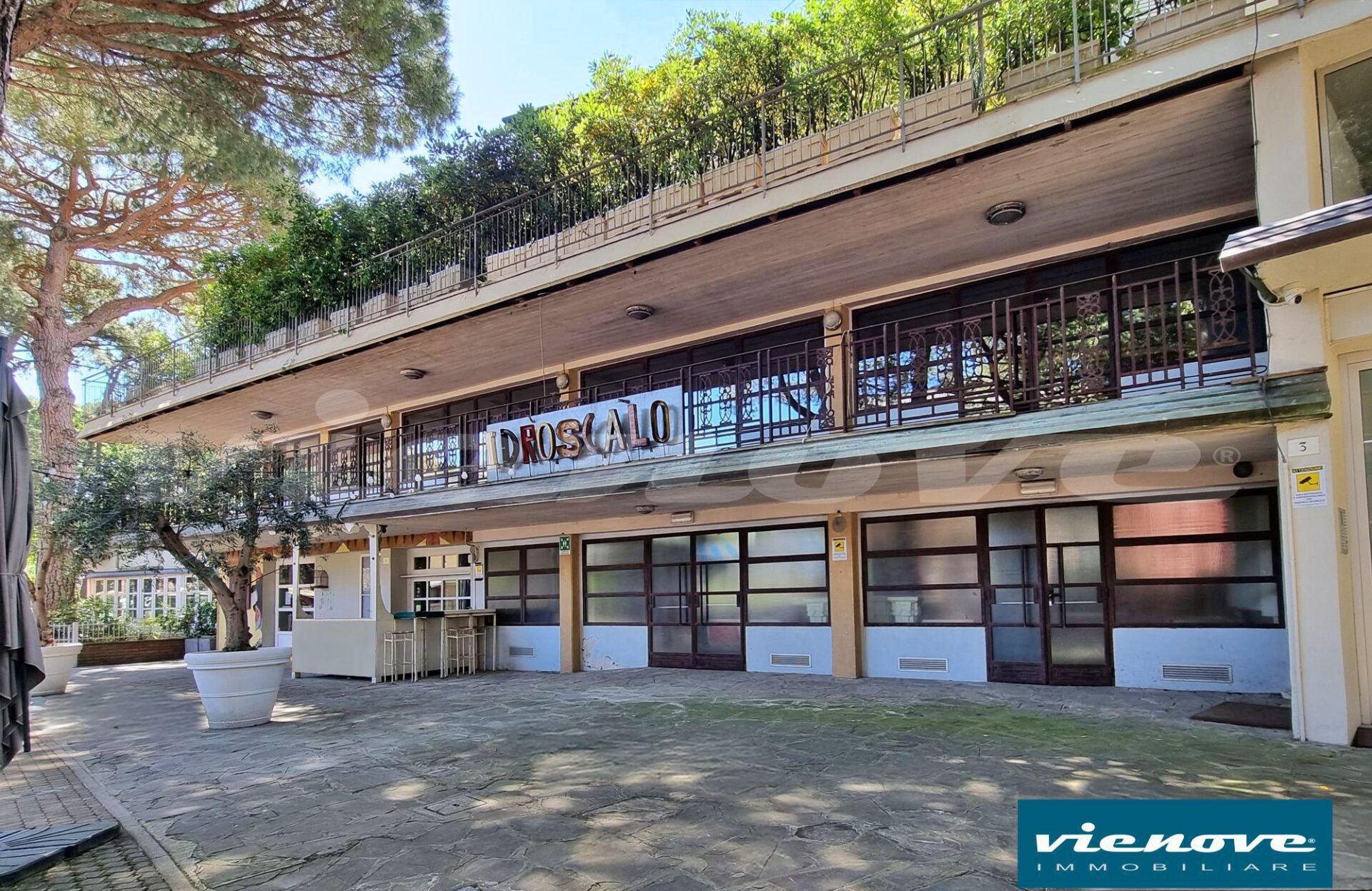 Milano Marittima (Cervia RA): In viale Romagna, Raffinato, grande e versatile immobile Commerciale multiuso di circa 800 mq coperti più 50 mq di terrazzi, ex sede di un noto locale della Riviera, l’Idroscalo, alla base del grattacielo Marinella, adiacente il centro pedonale di Milano Marittima ricco di negozi di pregio e locali alla moda.