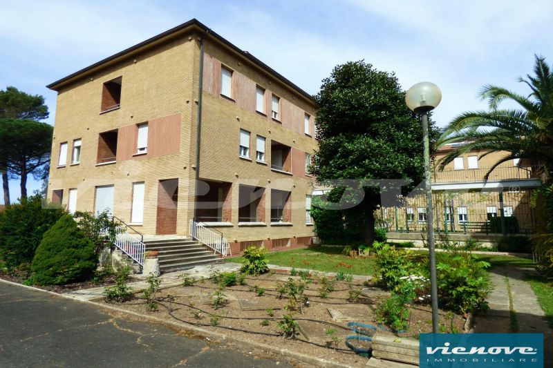 The complex, well-kept and in good maintenance conditions, has a cadastral destination B/1 and is composed of a large “Z”-shaped main building with another structure connected to the center and some annexes and external ancillary rooms, within a private park, has 4 vehicular/pedestrian accesses, the main one directly on via Cassia, the others service between via Cassia and a private side street.