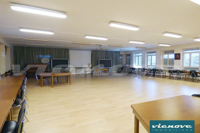 The complex, built around 1960, has rooms for all the functions necessary for community life; Apartments, guest accommodation, offices, meeting rooms, recreation rooms, gathering spaces, cloisters, attic rooms, partially covered attic terraces, canteen rooms, kitchens, laundry, ironing room, warehouses, boiler room and other technical rooms, sports field (in disused), green areas with lawns and tall trees, and a small orchard. Parking for cars and coaches.
