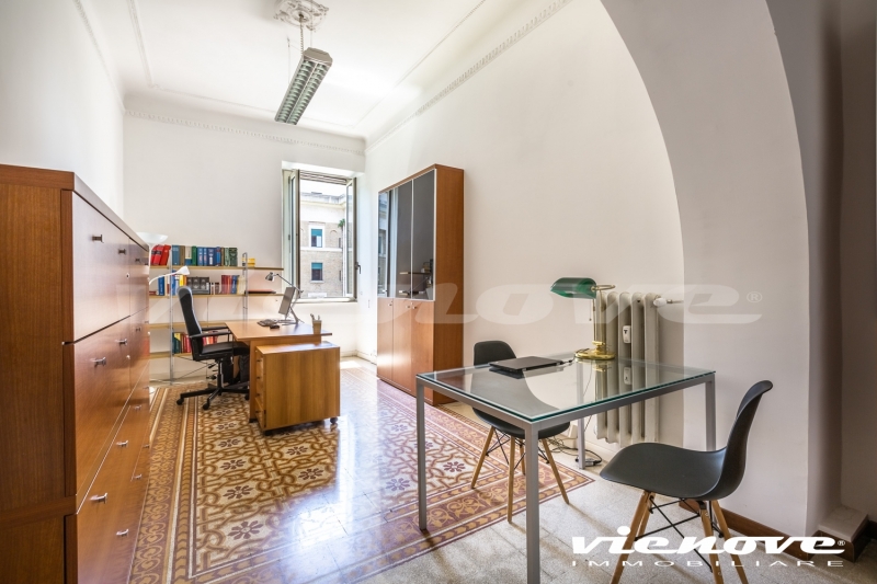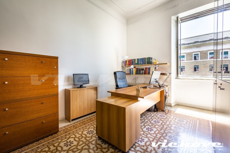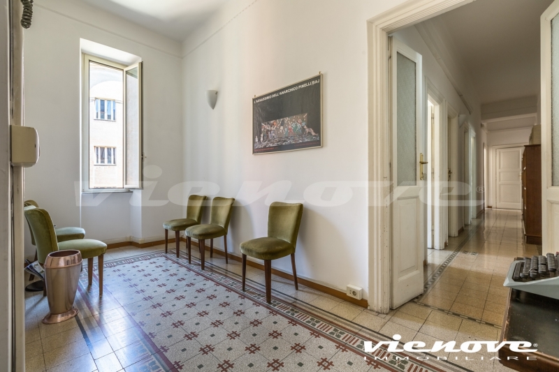 Roma, Castro Pretorio – Università: In Viale dell’Università, adiacente Piazza Confienza, tra villini e palazzi d’epoca, proponiamo un appartamento ad uso ufficio (convertibile in residenziale) di circa 205Mq commerciali. L’immobile si trova all’interno di un grande e tipico cortile signorile costituito da tre palazzine dei primi del 900 e con servizio di portineria. La doppia entrata del fabbricato permette di accedervi sia da Viale dell’Università che dalla parallela Via Monzambano. L’appartamento, si trova al quarto piano di una delle palazzine di cinque piani ed ha due entrate. E’ costituito da ingresso, sette camere, doppi servizi, cucina, ripostiglio, un balconcino ed una cantina di pertinenza. Soffitti alti oltre 3,40 metri e pavimenti originali dell’epoca in cui è stato realizzato.
