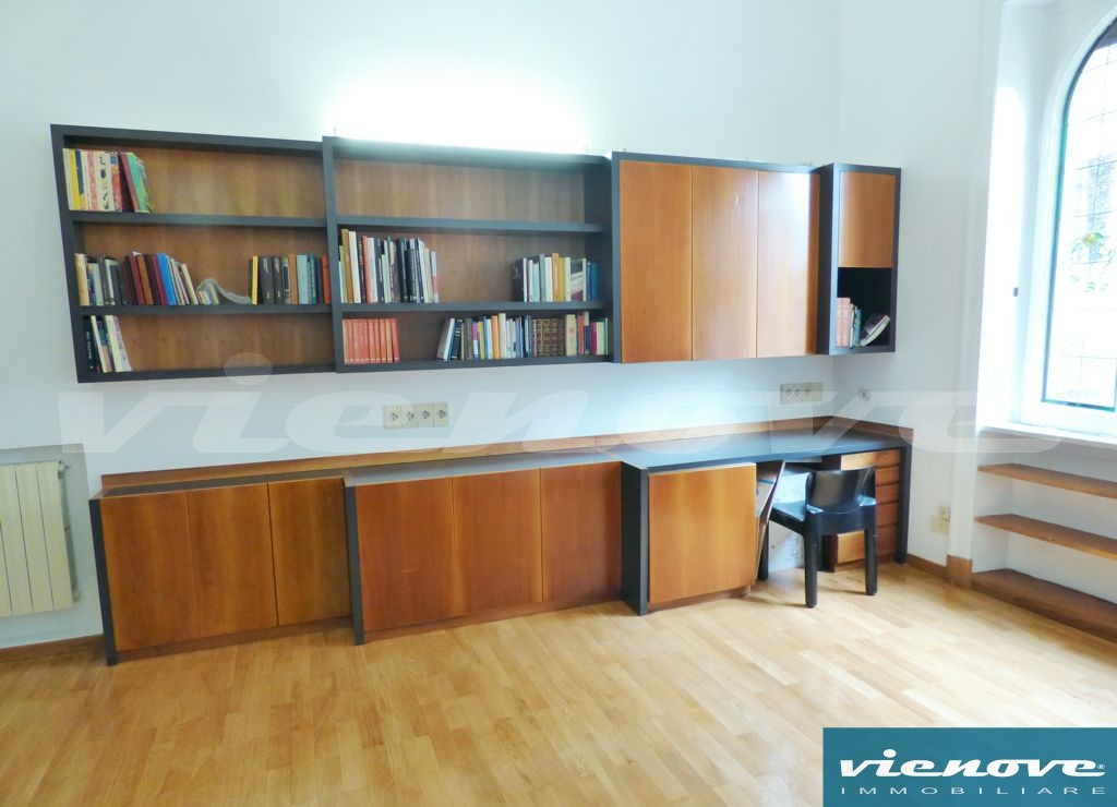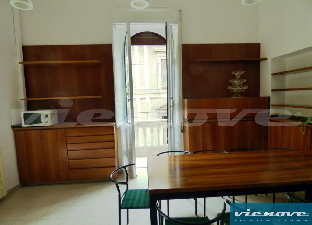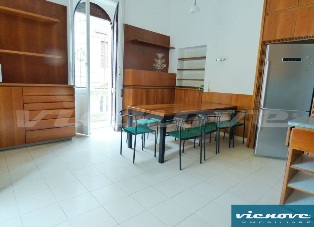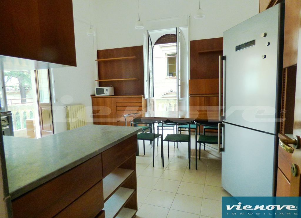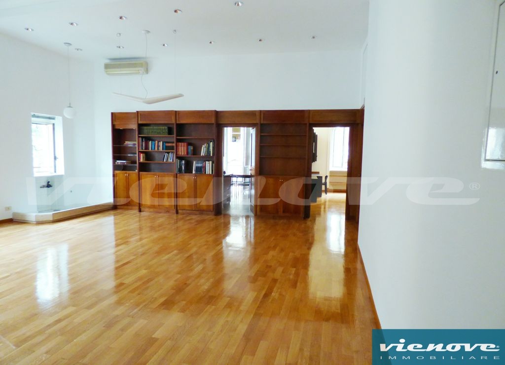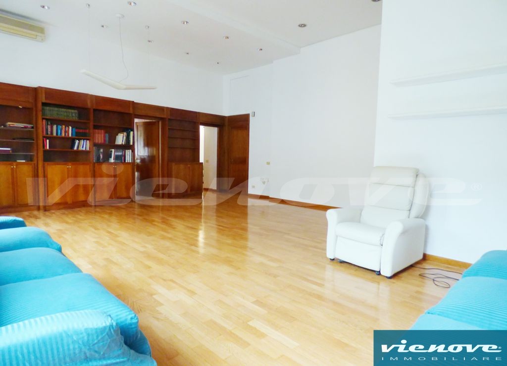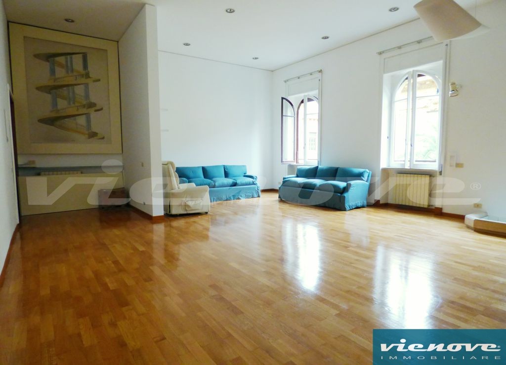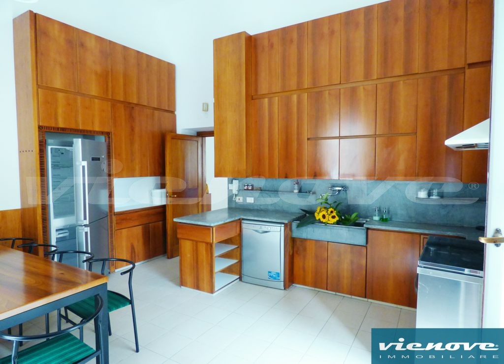 L’immobile è composto da un bell’ingresso, ampio salone triplo, una cucina particolarmente grande ed abitabile ammobiliata con mobili in legno massello da arredo, 3 camere da letto padronali ed una stanza di servizio con stireria, 3 bagni, di cui uno di servizio. Due balconi escono dalla cucina ed uno da una delle stanze padronali. L’immobile ha soffitti alti 4,5 metri, in parte liberi ed in parte soppalcati come nel corridoio della zona letto e nella camera di servizio.