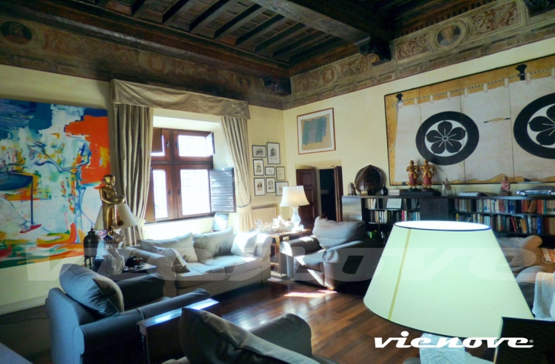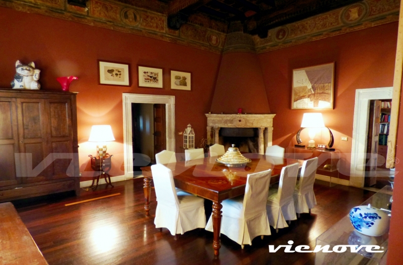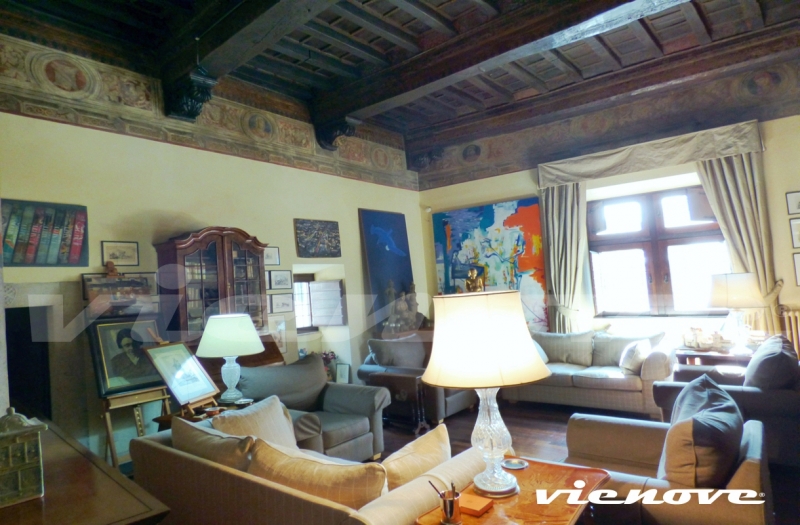 Dal portone principale si accede all’imponente atrio, dal quale si accede alle diverse aree del palazzetto, i due appartamenti principali hanno grandi e bellissimi spazi di rappresentanza, ambienti con finiture di pregio in pietra, antichi soffitti in legno decorato a cassettoni, logge colonnate e movimentati spazi con antico fascino ed affacci esclusivi.