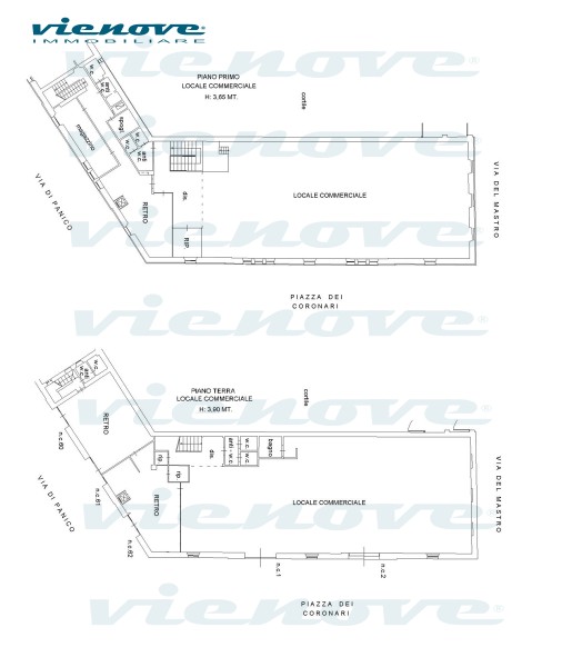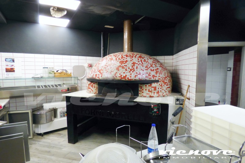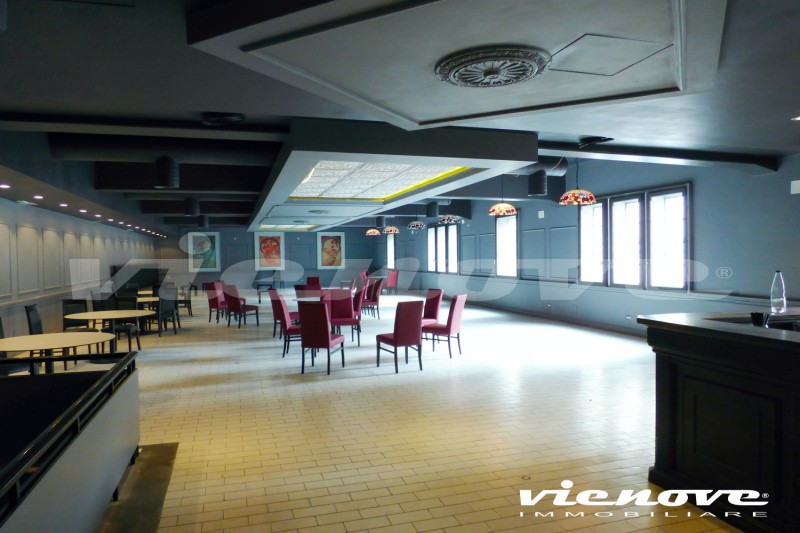 Al piano terra si trova una grande sala, bancone bar/vivande, grande cucina parzialmente attrezzata e con forno per pizze, montacarichi vivande, magazzini vari e servizi igienici, al primo piano una grande sala con bancone bar/vivande, magazzini vari e servizi igienici. Il locale è dotato di canna fumaria e sistemi di trattamento aria.