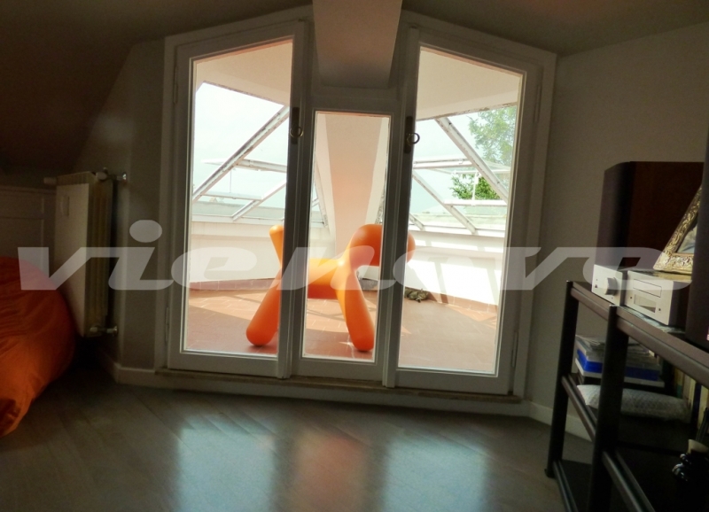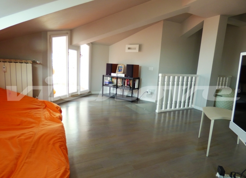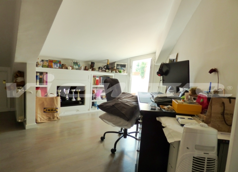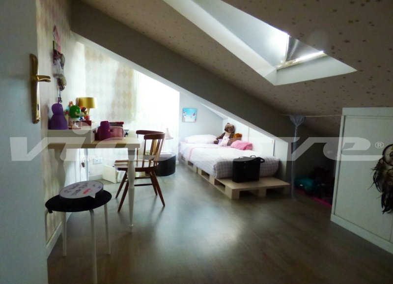 L’immobile, di circa 180mq coperti si trova al 4° ed ultimo piano e mansarda di una palazzina in cortina con ascensore e cortile comune ed ha una quadrupla esposizione con vista panoramica esclusivamente verso l’esterno. La proprietà, ristrutturata nel 2015, è composta da un salone doppio con area pranzo e soggiorno con camino; due camere da letto matrimoniali con due bagni completi (uno con doccia e l’altro con vasca), una lavanderia ed una bella cucina abitabile. Fuori dal salone c’è un terrazzo attrezzato con pergotenda e perfettamente abitabile, uscendo dalle stanze da letto ci sono balconi. Salendo la scala in legno che porta al piano superiore, troviamo uno spazio comune mansardato con un secondo camino ed uscita verso due terrazzini, tre camere, tutte mansardate ed un bagno con doccia.