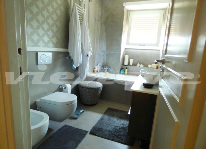 Riguardo alle rifiniture, le finestre sono tutte in legno con doppi vetri, i pavimenti in un bel parquet chiaro a doghe lunghe; maioliche in cucina e nei servizi; due ingressi, entrambi blindati.