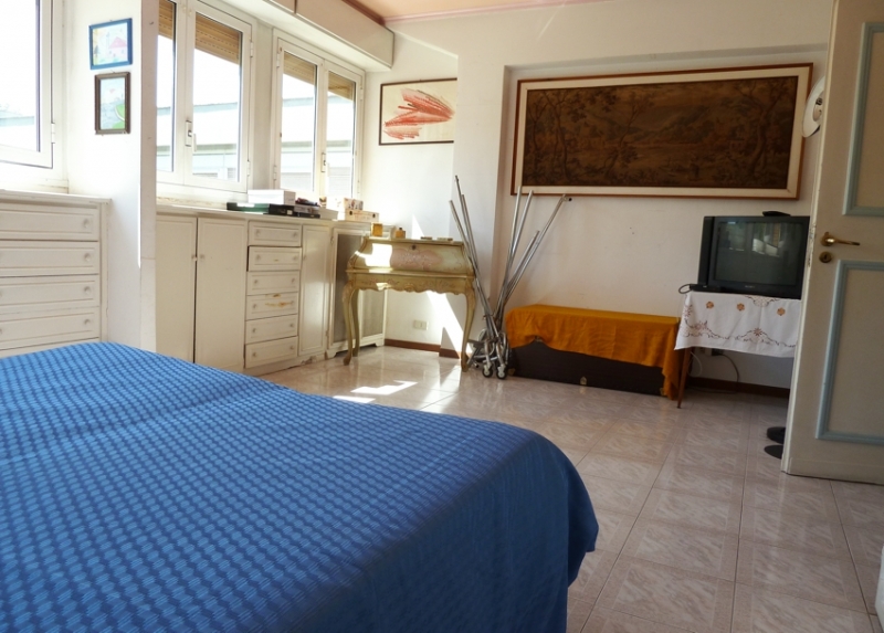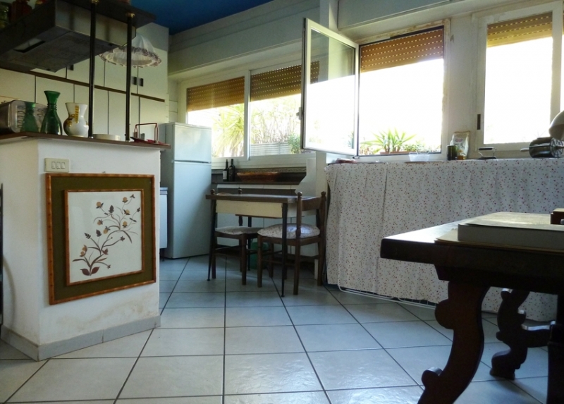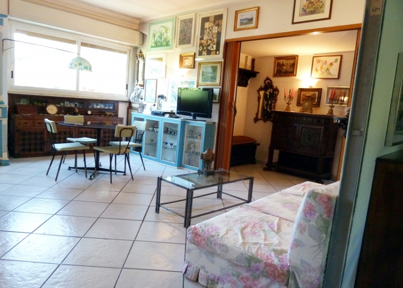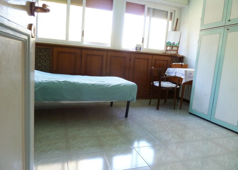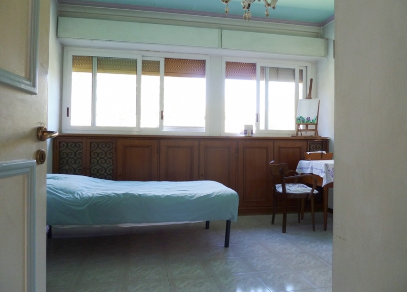 L’appartamento, ristrutturato nel 1991, è composto da un ingresso, un ampio salone, una cucina abitabile, una camera da letto molto grande e con una lunga finestratura che permetterebbe la divisione dell’ambiente in due stanze, un’altra stanza da letto, un ripostiglio e due bagni, di cui uno con doccia ed uno con vasca.