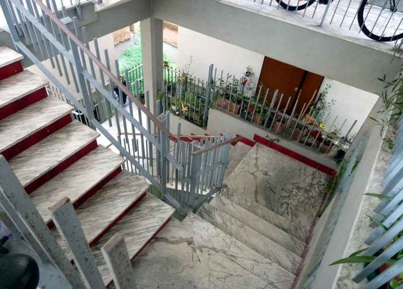 L’immobile ha mantenuto il disegno originale. Il complesso edilizio, senza ascensore, con una scala centrale che conduce a 4 appartamenti per piano, posizionati su un ballatoio, è completamente immerso nel verde con ampie possibilità di parcheggio.