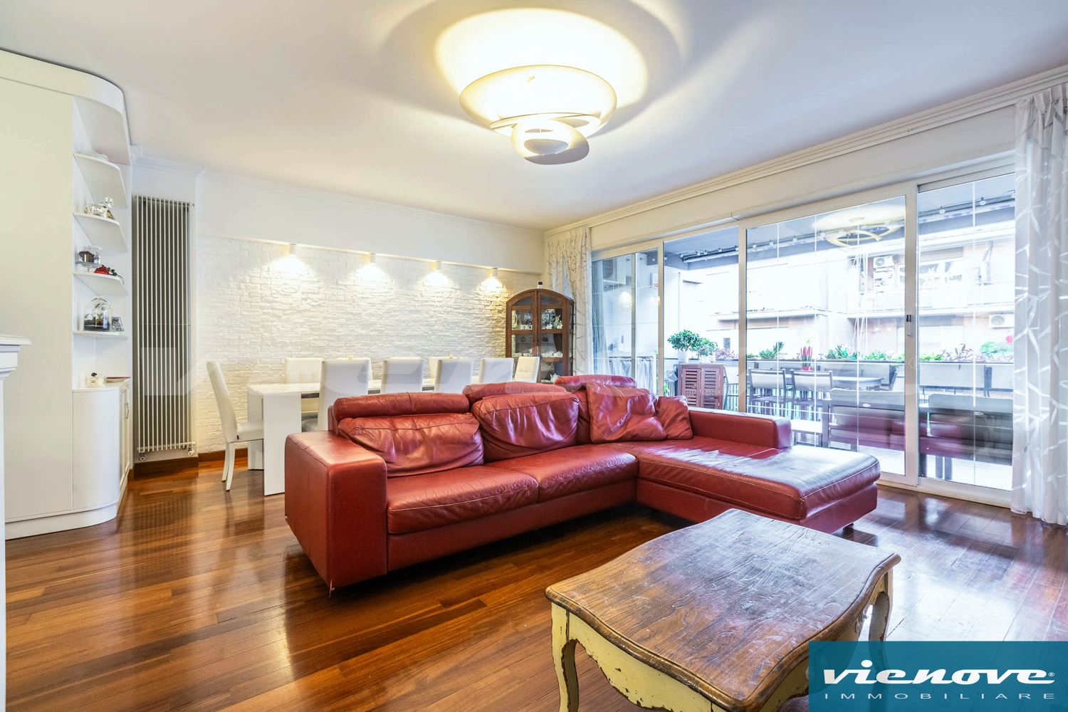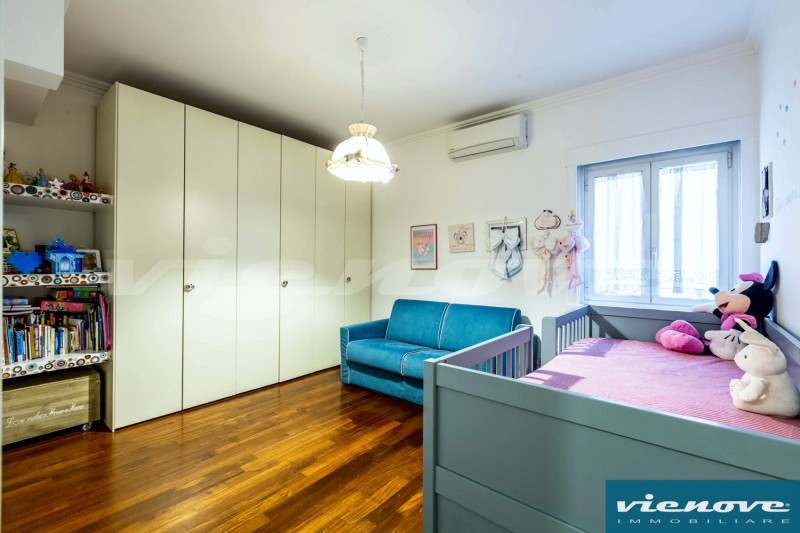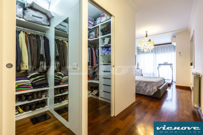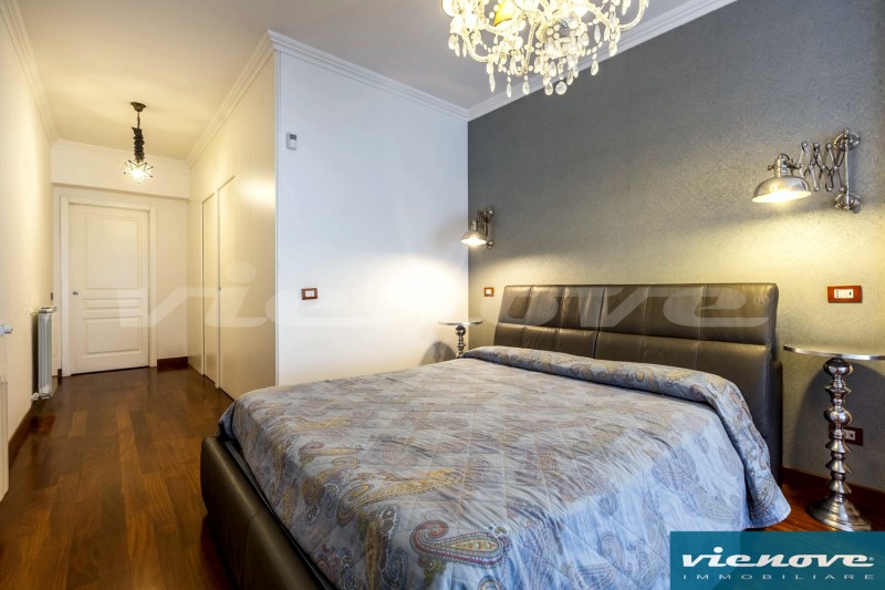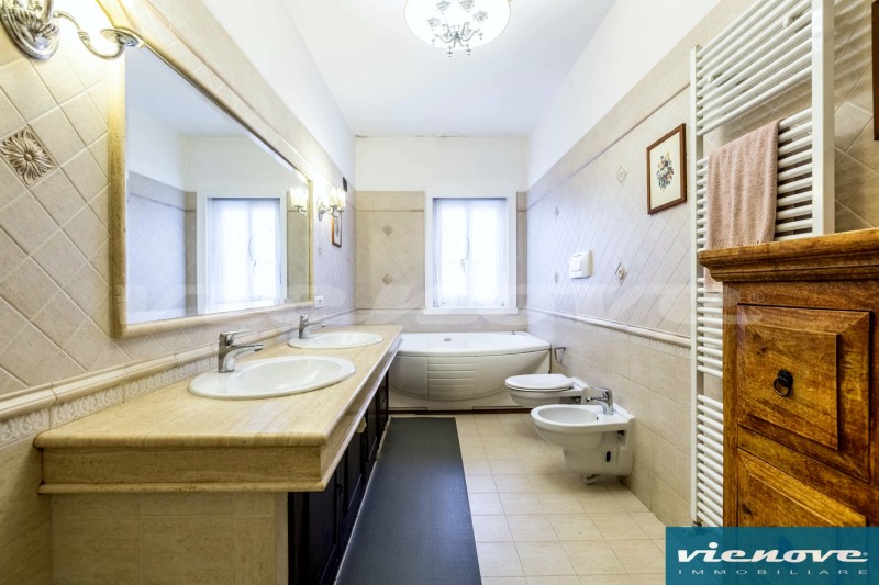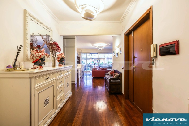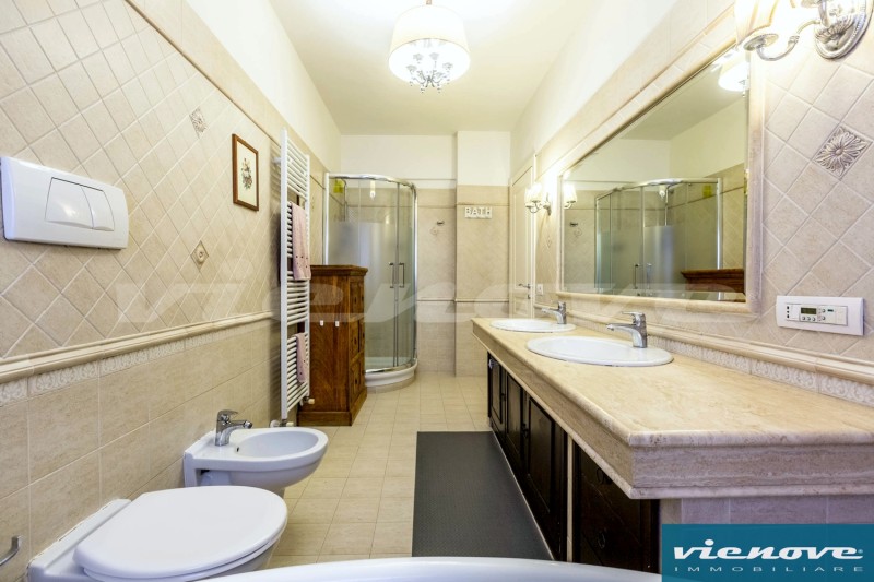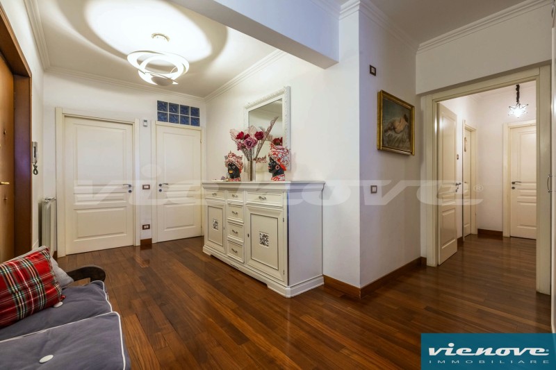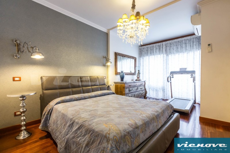 Relativamente alle rifiniture ed agli impianti, è presente un portoncino blindato; l’immobile è pavimentato ovunque in parquet tranne che nei bagni ed in cucina; il riscaldamento è centralizzato a consumo; condizionatori; le finestre sono ovunque in PVC, mentre nella camera matrimoniale sono in legno, con doppi vetri; è presente un impianto di allarme, sia volumetrico che perimetrale.