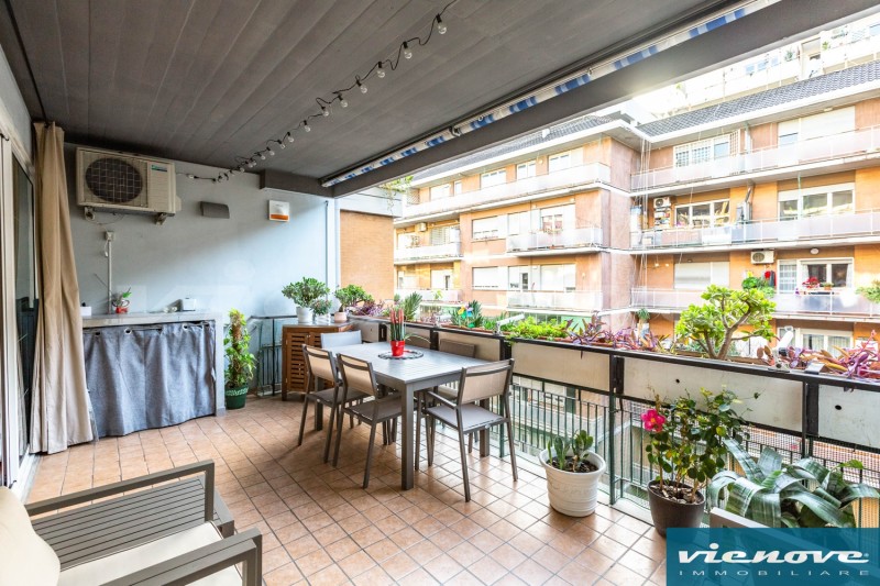 Roma – Monteverde Donna Olimpia: In zona Monteverde nuovo, in una palazzina in cortina in buono stato, con portiere, senza barriere architettoniche, proponiamo un immobile di circa 160mq, al 6° di 8 piani. L’appartamento, in ottimo stato, ha un doppio affaccio verso Via Toscani e verso le chiostrine interne, con una grande terrazza abitabile di oltre 15mq orientata a sud/ovest, fuori dal salone, e due balconi fuori dalla cucina e dalla camera matrimoniale.
