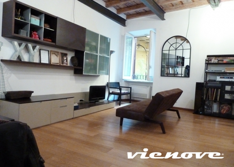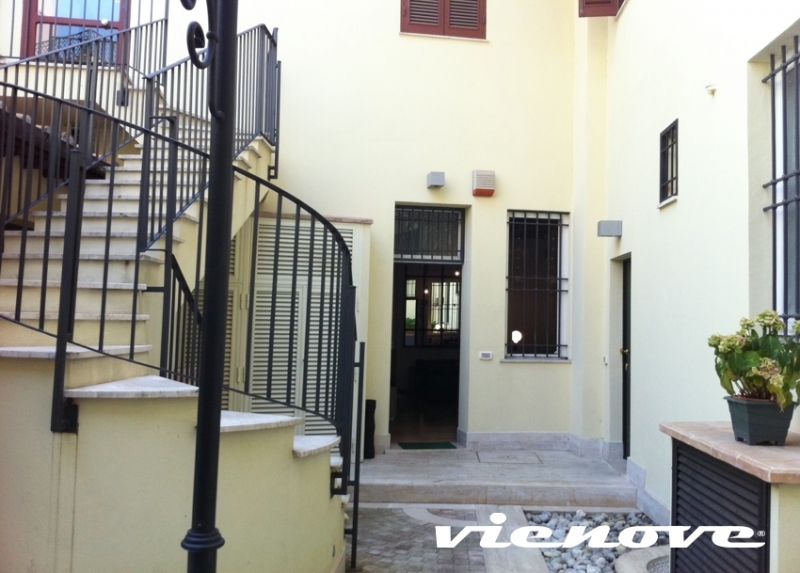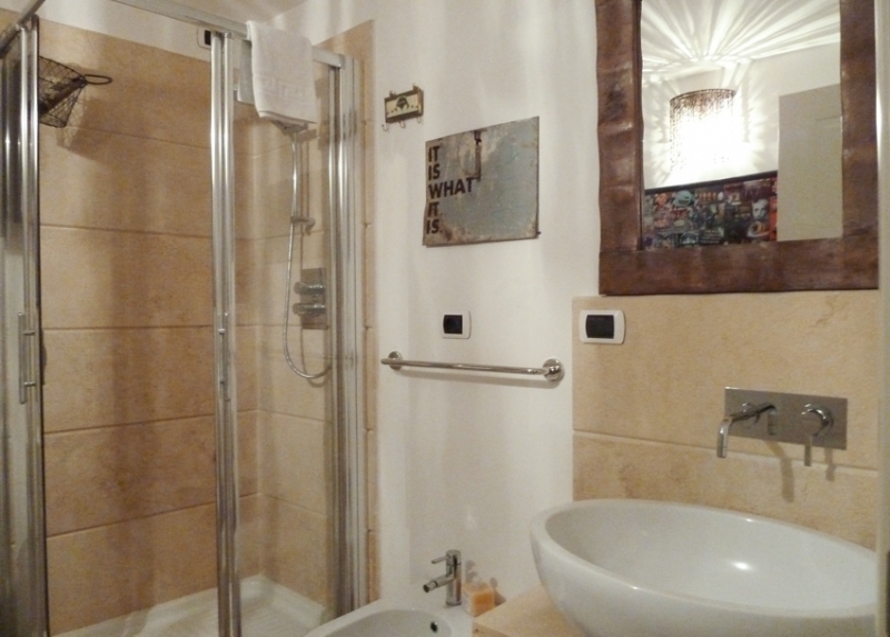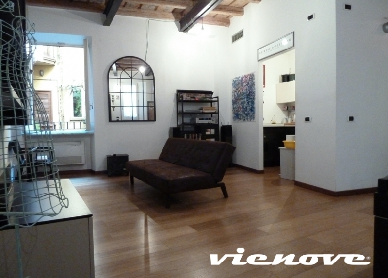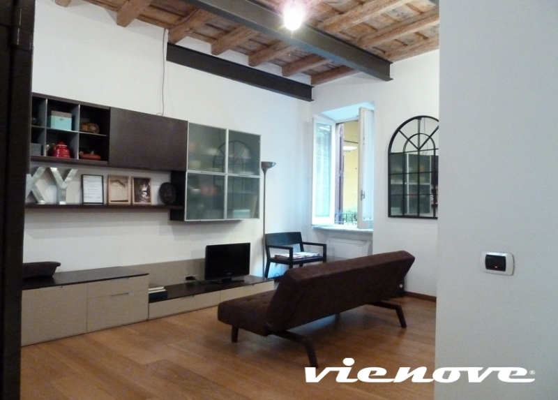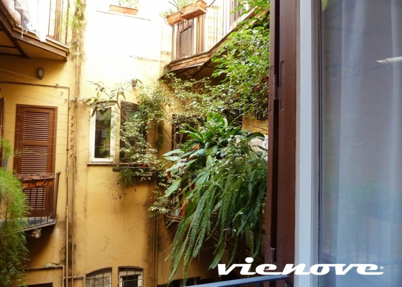In the heart of the Monti district, inside Ciancaleoni Palace, we propose a nice flat of about 48 sq mt, completely restored and finely furnished. The apartment is on the ground floor and it consists of a living area, kitchen, bedroom and bathroom with shower. The property opens towards two sides with north/east and south/west exposure. On one side it looks towards a typical courtyard of the Roman districts, while on the other side looks towards a picturesque internal condominnium courtyard. Ceilings are covered with wooden planks and wooden beams, the whole flat has parquet floor except the bathroom paved and partially covered with travertine. The windows have wooden shutters and double glazing. The kitchen is equipped with dishwasher and electric oven, the bathroom is furnished and complete with washing machine, the facilities are up to standard, the heating is autonomous.