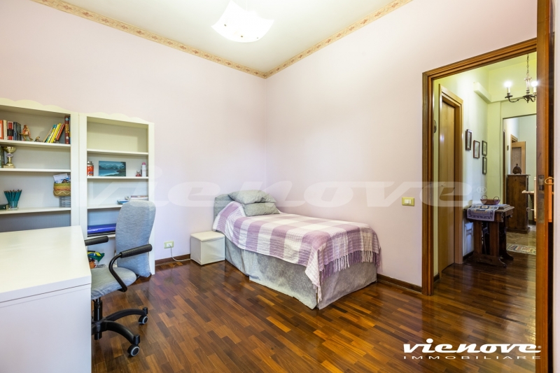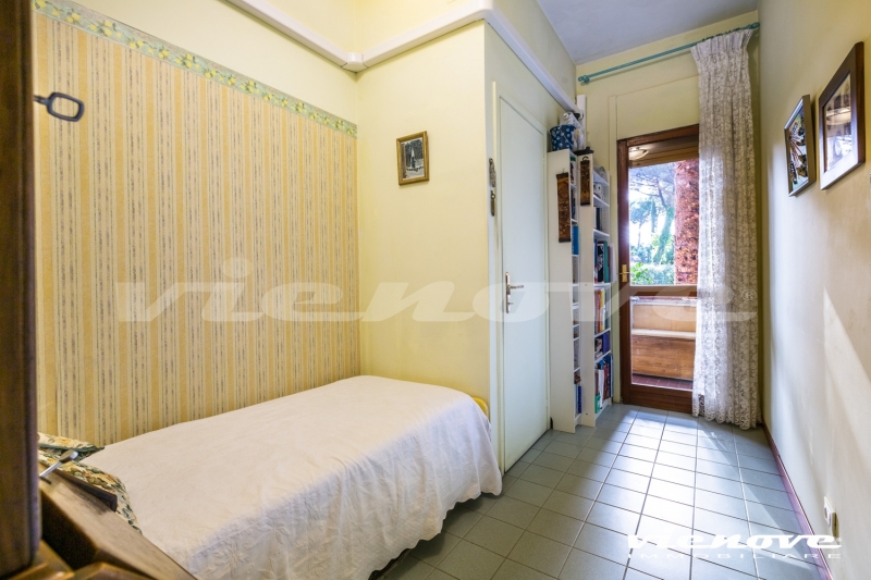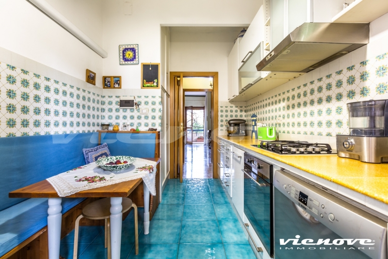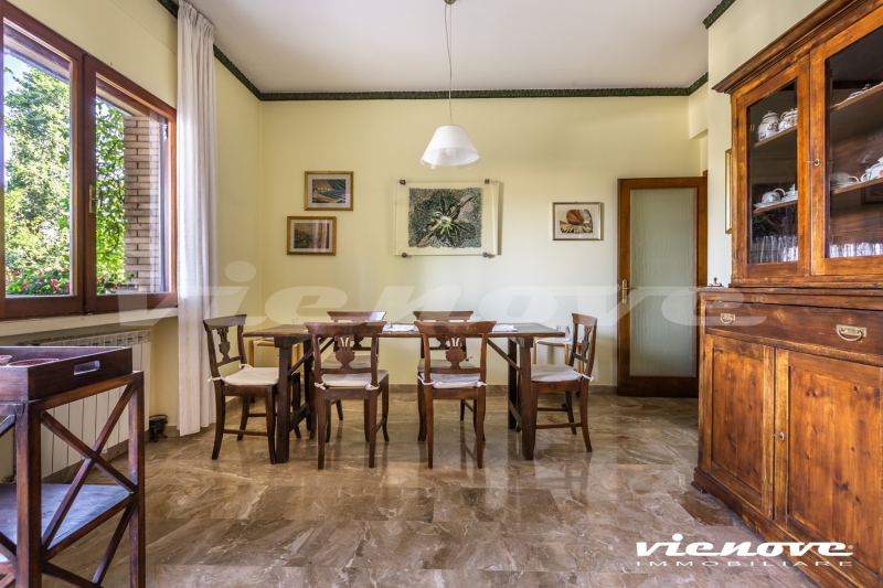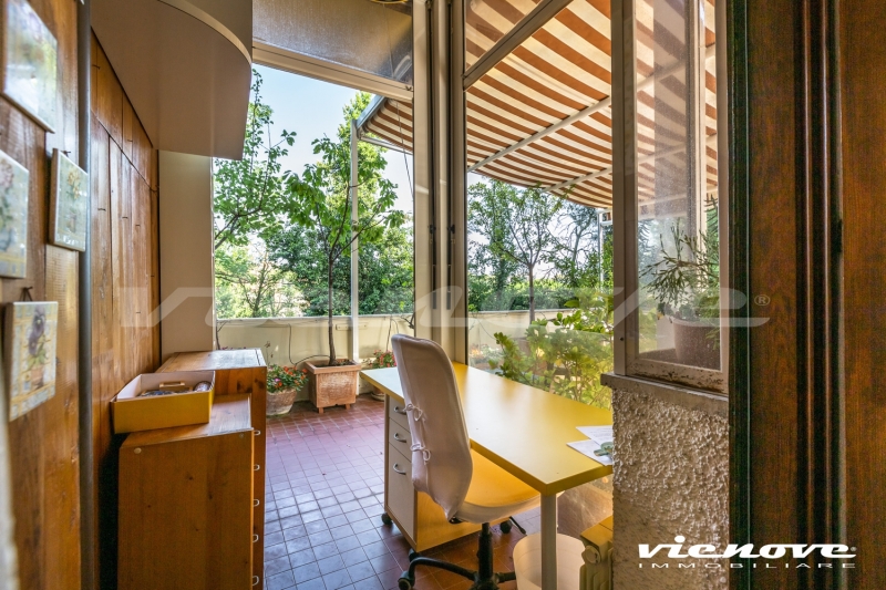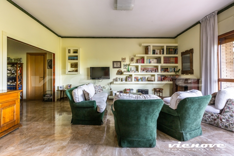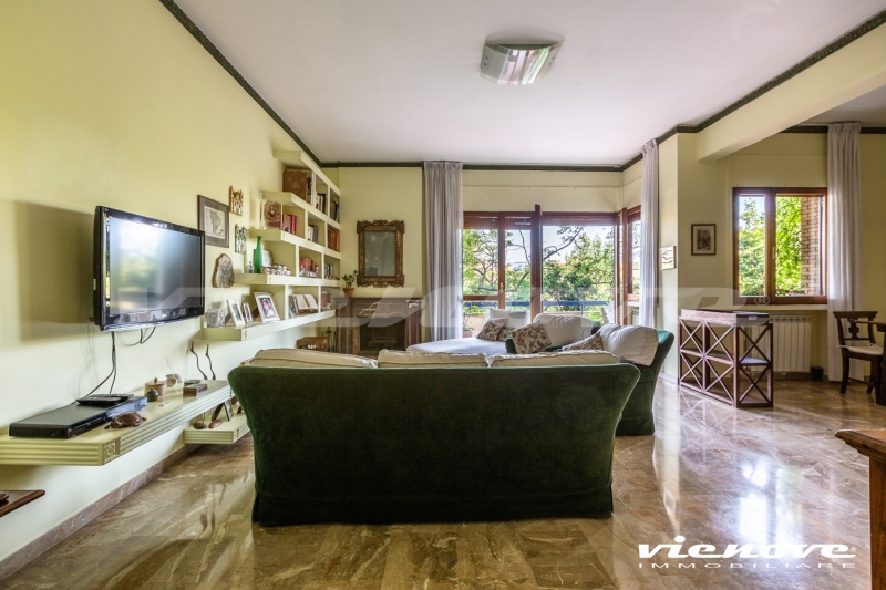 Il salone si affaccia sul verde con vista laterale di Villa Pamphili, le camere da letto più grandi guardano entrambe nel verde; la stanza/studio e la cucina si affacciano sul giardino lato Piscina. Vi sono diversi armadi a muro.