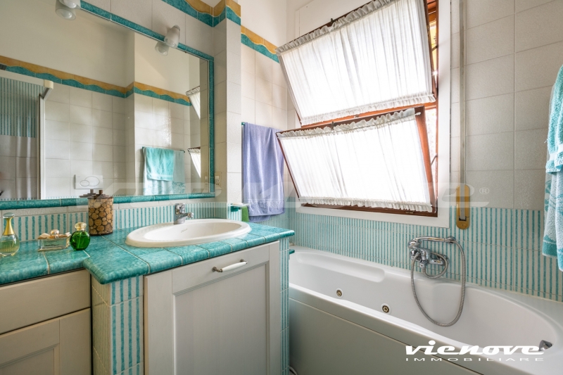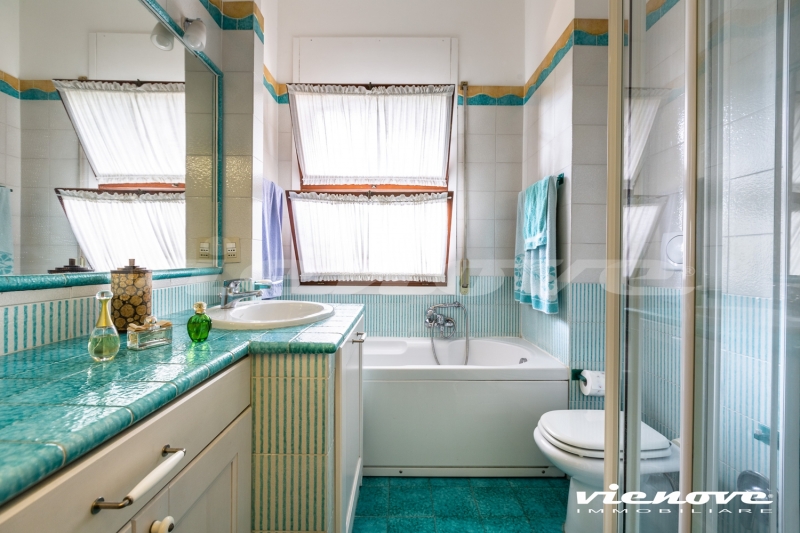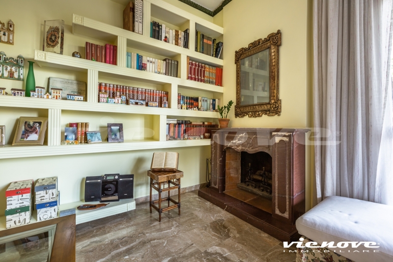 Riguardo le rifiniture, la maggior parte delle finestre è in legno con vetro singolo, le serrande sono in legno; i pavimenti sono in marmo breccia Vittoria nella zona giorno e parquet nella zona notte; l’immobile è dotato di riscaldamento autonomo. C’è un bel camino funzionante in marmo rosso persiano in salone.