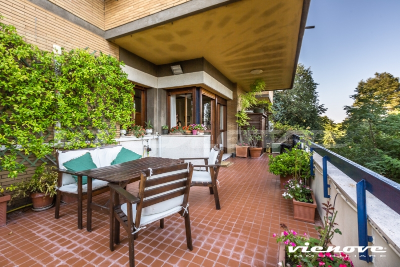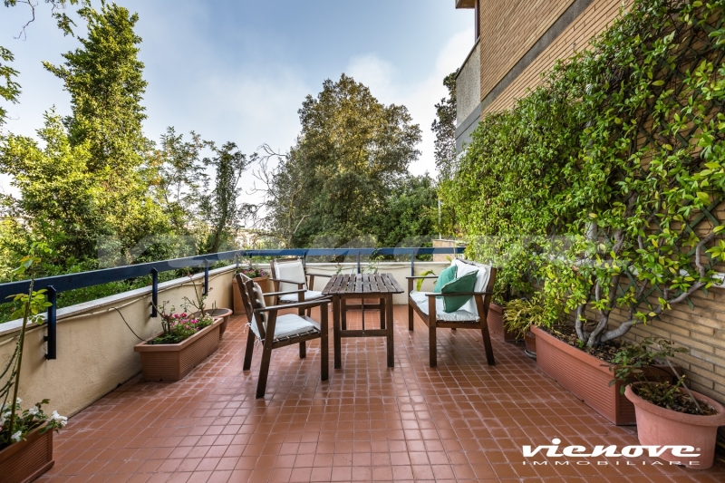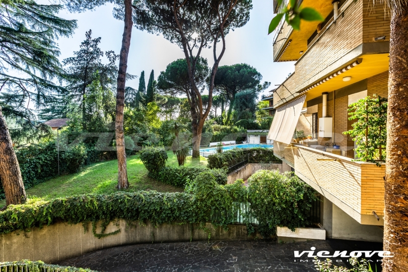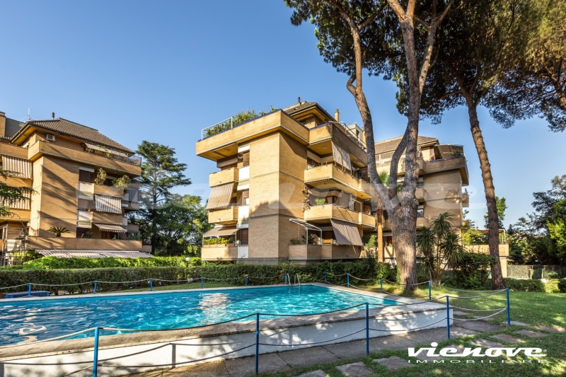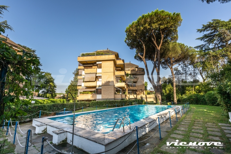 Roma, Via della Nocetta: In un elegante complesso residenziale in cortina con piscina e portiere, in un rigoglioso e curato giardino condominiale, proponiamo un luminoso Appartamento affacciato sul verde e a cento metri da Villa Pamphili.
