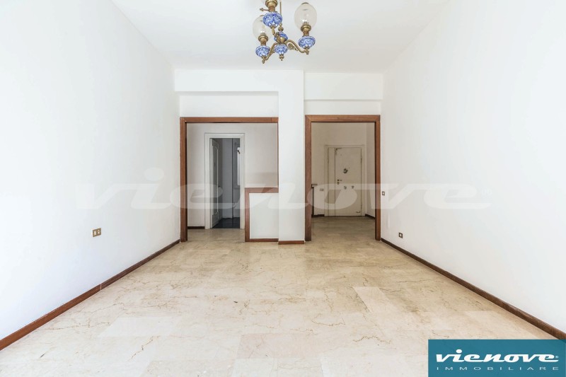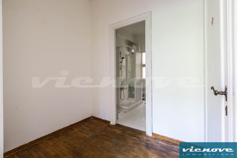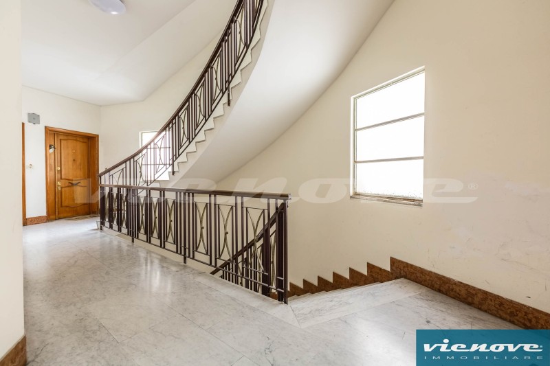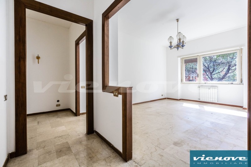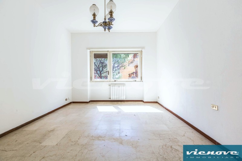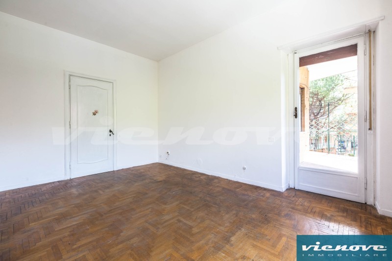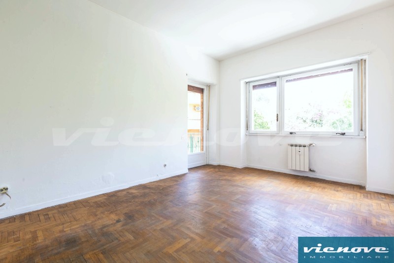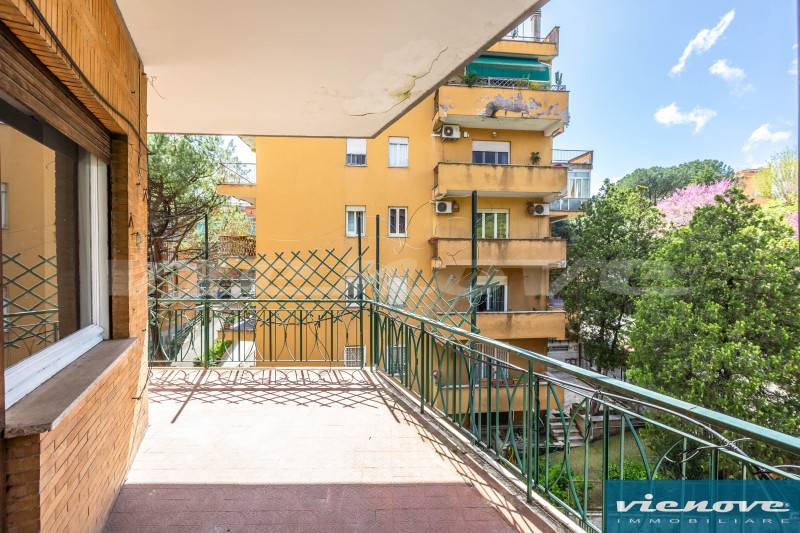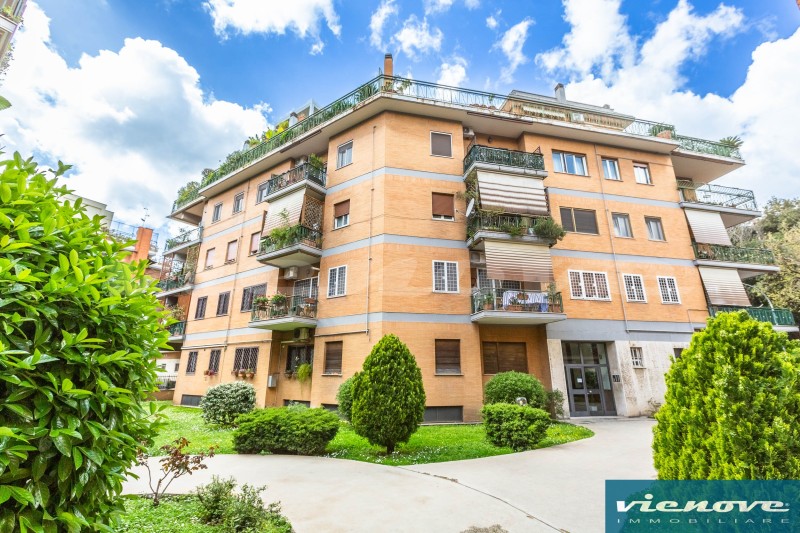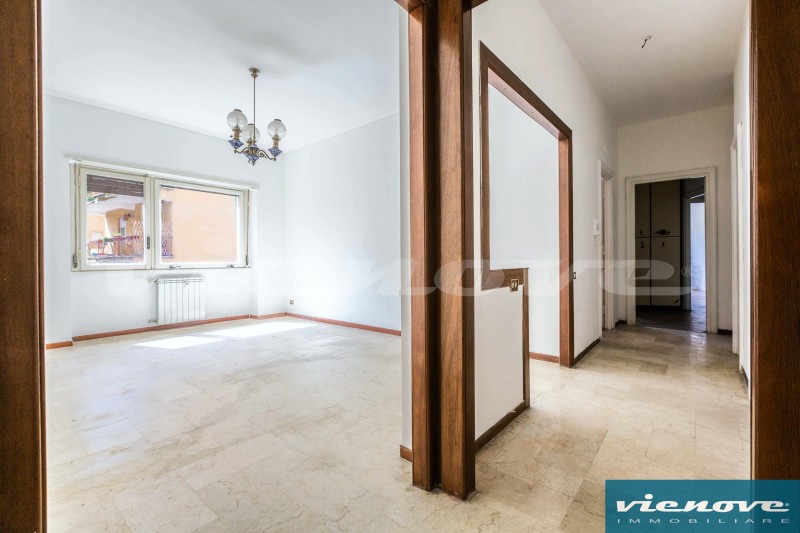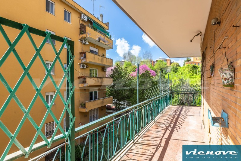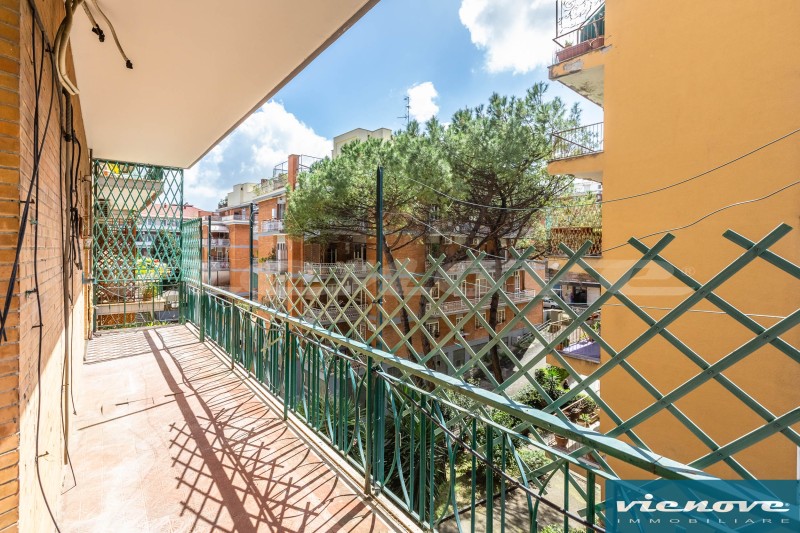 Posto al secondo piano di una palazzina in cortina di quattro piani con ascensore, l’appartamento è composto da un ingresso, un soggiorno, due ampie camere, una cucina abitabile, due bagni, un ripostiglio ed un ampio balcone di 20mq che affaccia verso Via Anselmo Ciappi. Relativamente alle rifiniture, il riscaldamento è centralizzato a consumo; la porta è blindata; nella zona giorno i pavimenti sono in marmette, parquet nelle camere e maioliche nei servizi; serrande in legno; infissi in legno con vetro singolo.