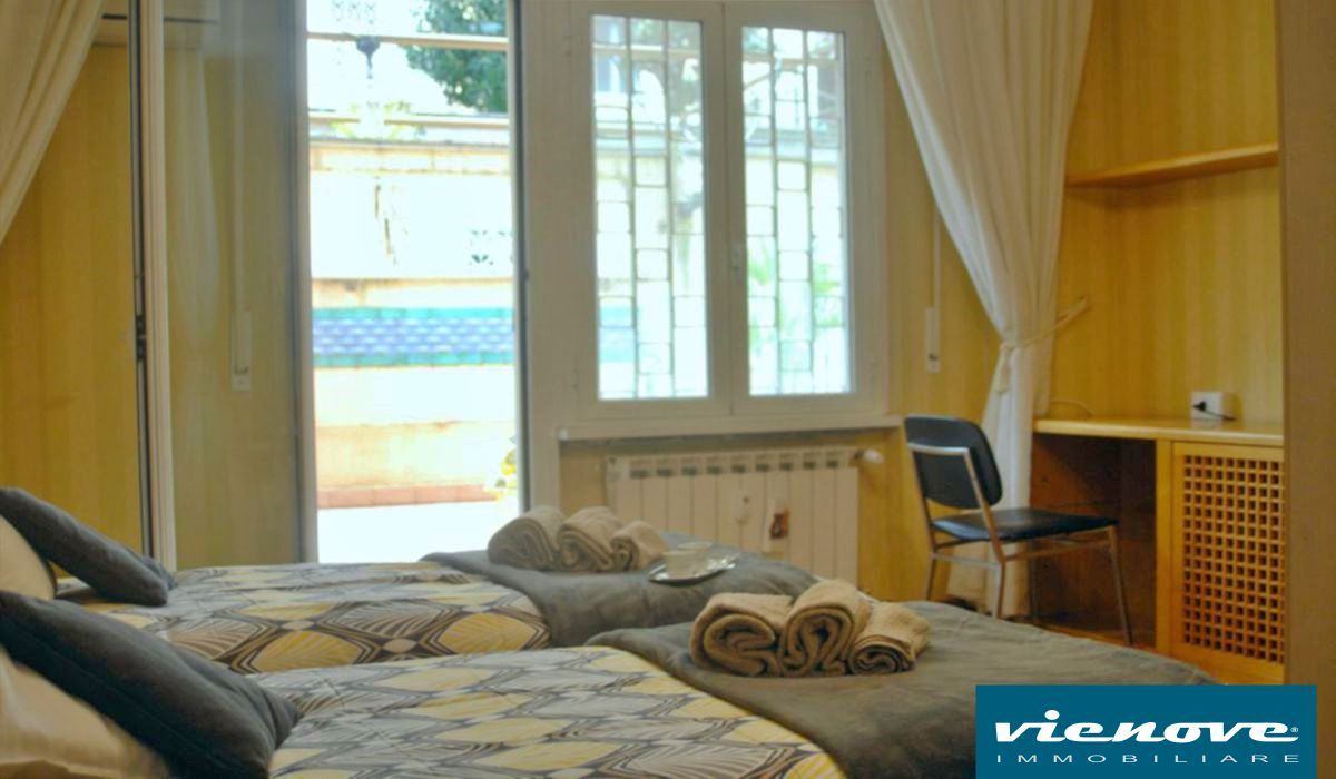 Roma – Trastevere: n Viale Glorioso, proponiamo un appartamento di circa 160 mq interni, sito al Piano Terra con un area esterna/giardino pavimentato di circa 90mq. L’immobile ha un ampio ingresso che si apre su un soggiorno con porta finestra con uscita sul giardino pavimentato, un ripostiglio, una prima stanza ed una cucina abitabile. Si entra quindi nella zona notte con altre 3 camere e due bagni completi con doccia. Tutte le stanze hanno un’uscita sul giardino pavimentato ed avendo l’appartamento un triplo affaccio rimane generalmente ventilato.