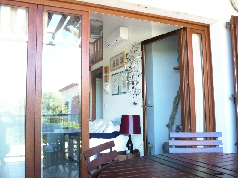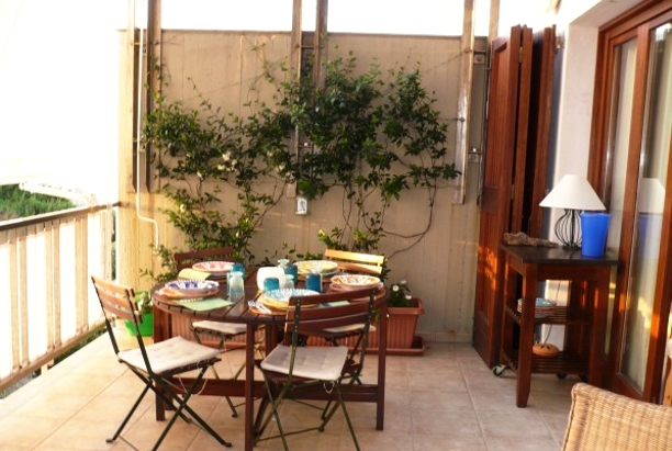 Relativamente alle rifiniture ed agli impianti, l’immobile è stato costruito nel 2000 ed è sito al primo e ultimo piano di un piccolo condominio di 2 livelli, ha infissi in legno con vetri singoli e scuri in legno con serratura blindata, aria condizionata di tipo inverter caldo/freddo, gas centralizzato, l’acqua proviene dalla cisterna condominiale (d’estate non manca mai perché è permanente una riserva).